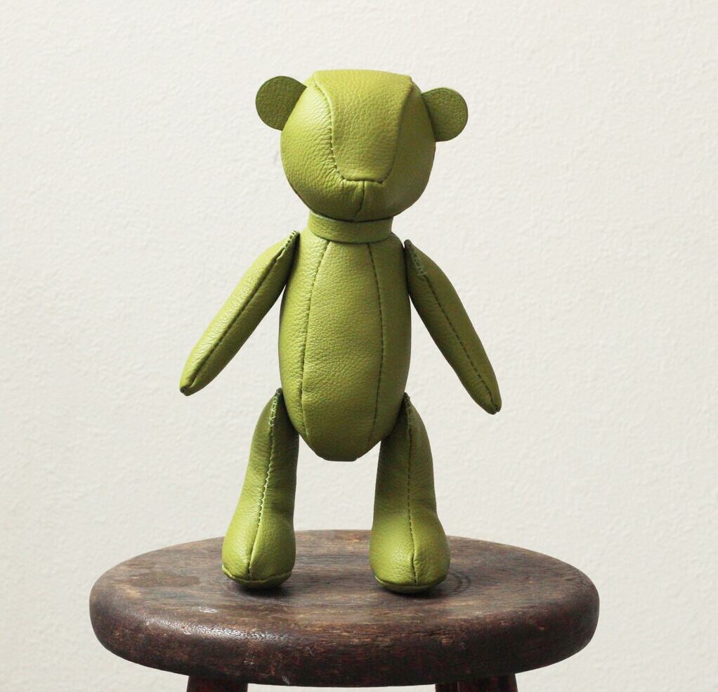 発色が良いドイツ製の上質なクロム鞣し革を使った珍しい革製のテディベアです。